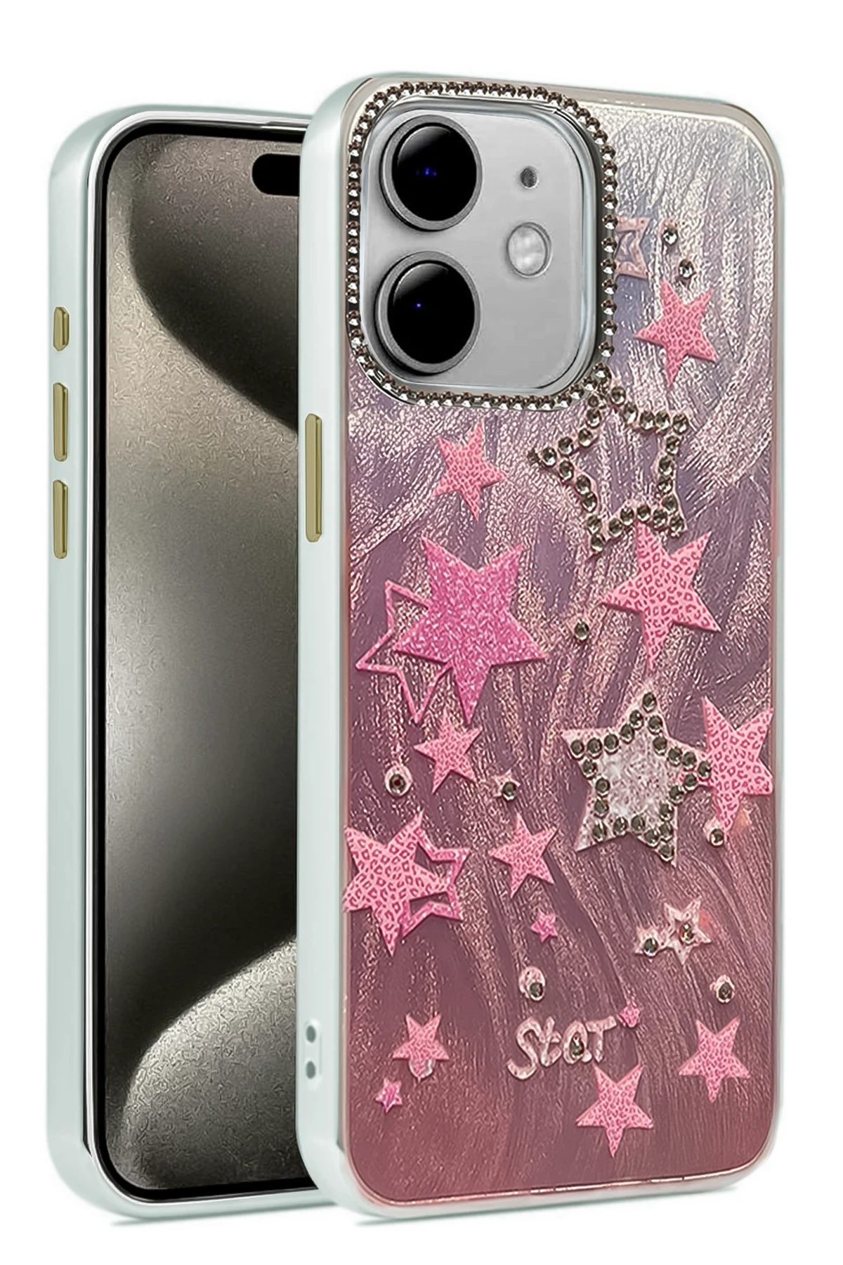 Kamera çevresinde yer alan parlak taş detaylar, hem zarafet hem de fonksiyonellik sunar.