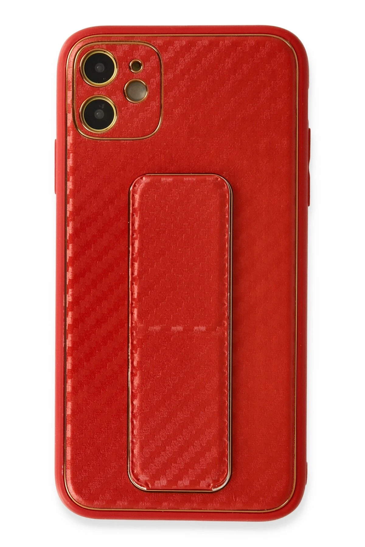 Newface iPhone 12 Kılıf Coco Karbon Standlı Kapak - Kırmızı