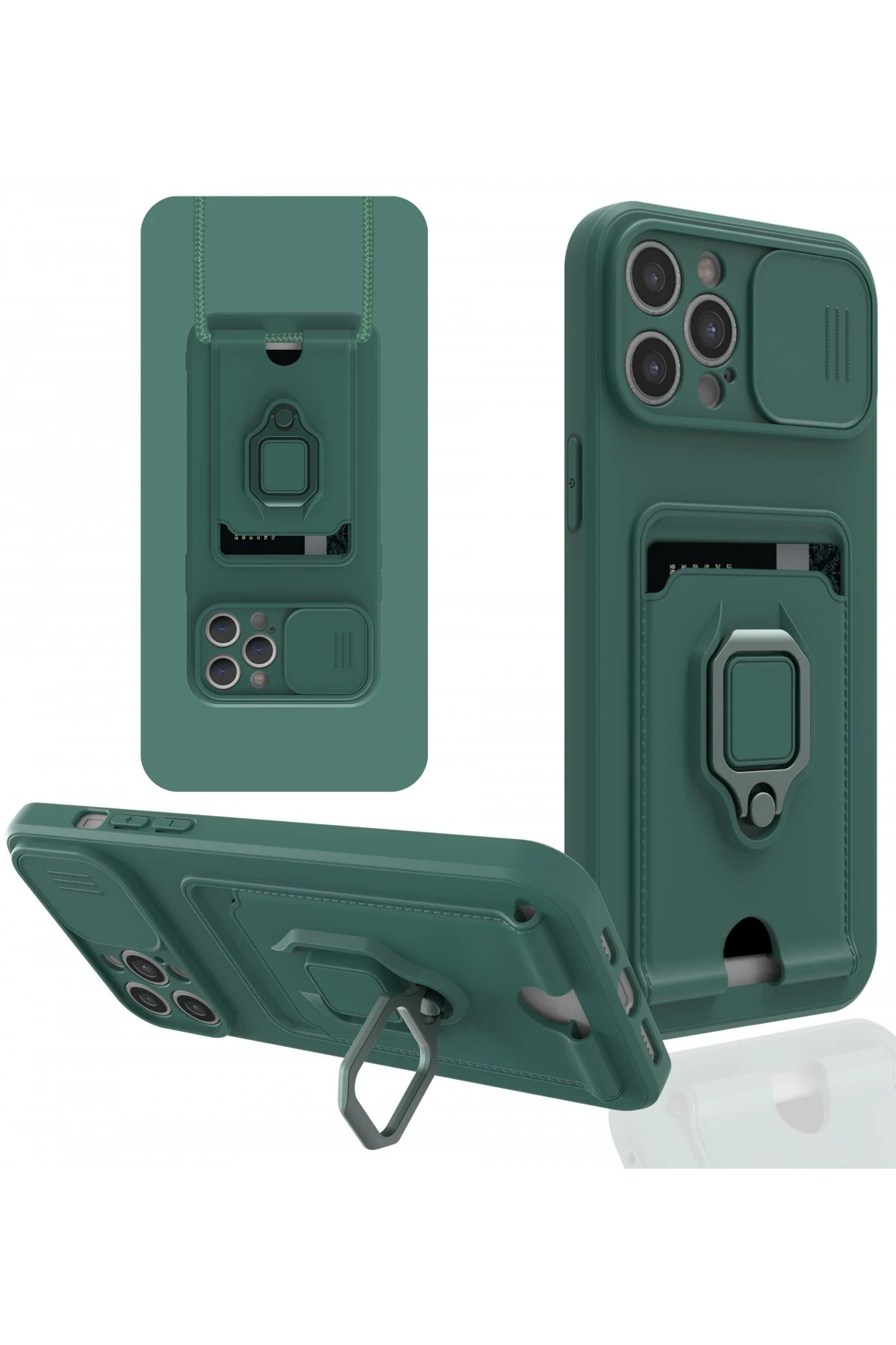 Kart Bölmeli | Kamera Korumalı | Stand Yüzük Destekli | Soft TPU Tasarım