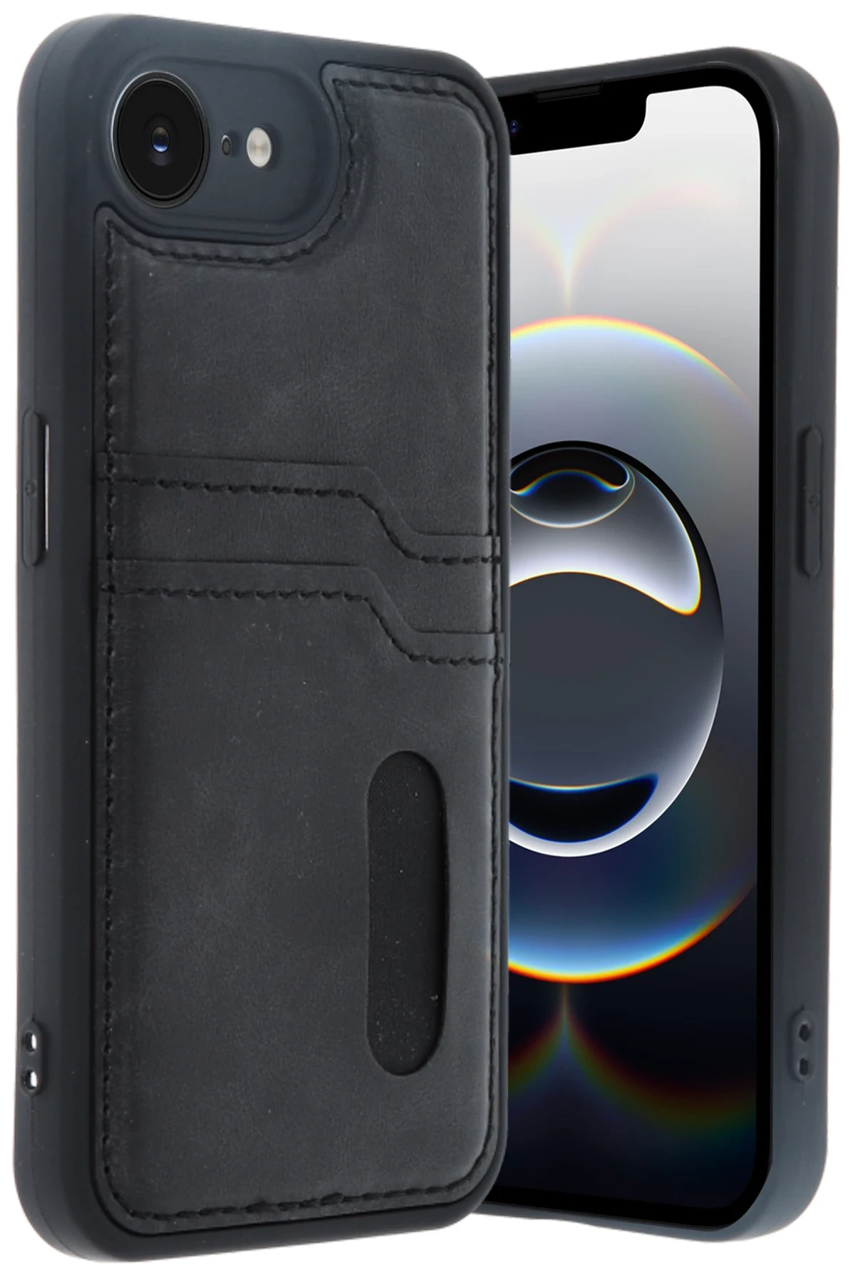 Newface iPhone 16E Kılıf Sara Kartvizitli Deri Kılıf - Siyah