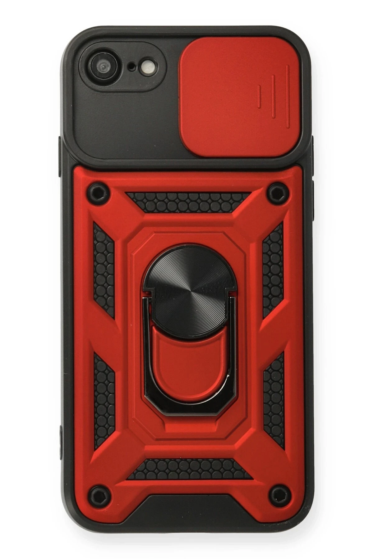 Newface iPhone 7 Kılıf Pars Lens Yüzüklü Silikon - Kırmızı