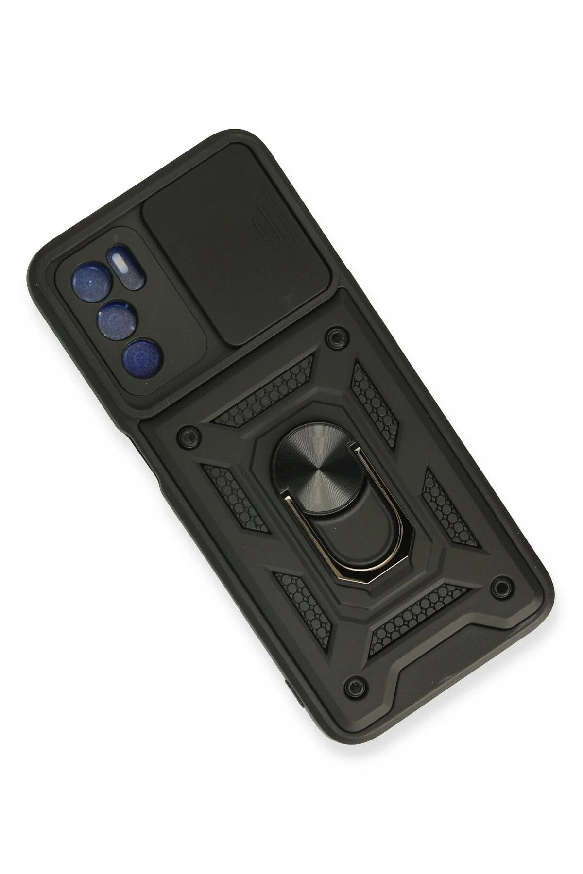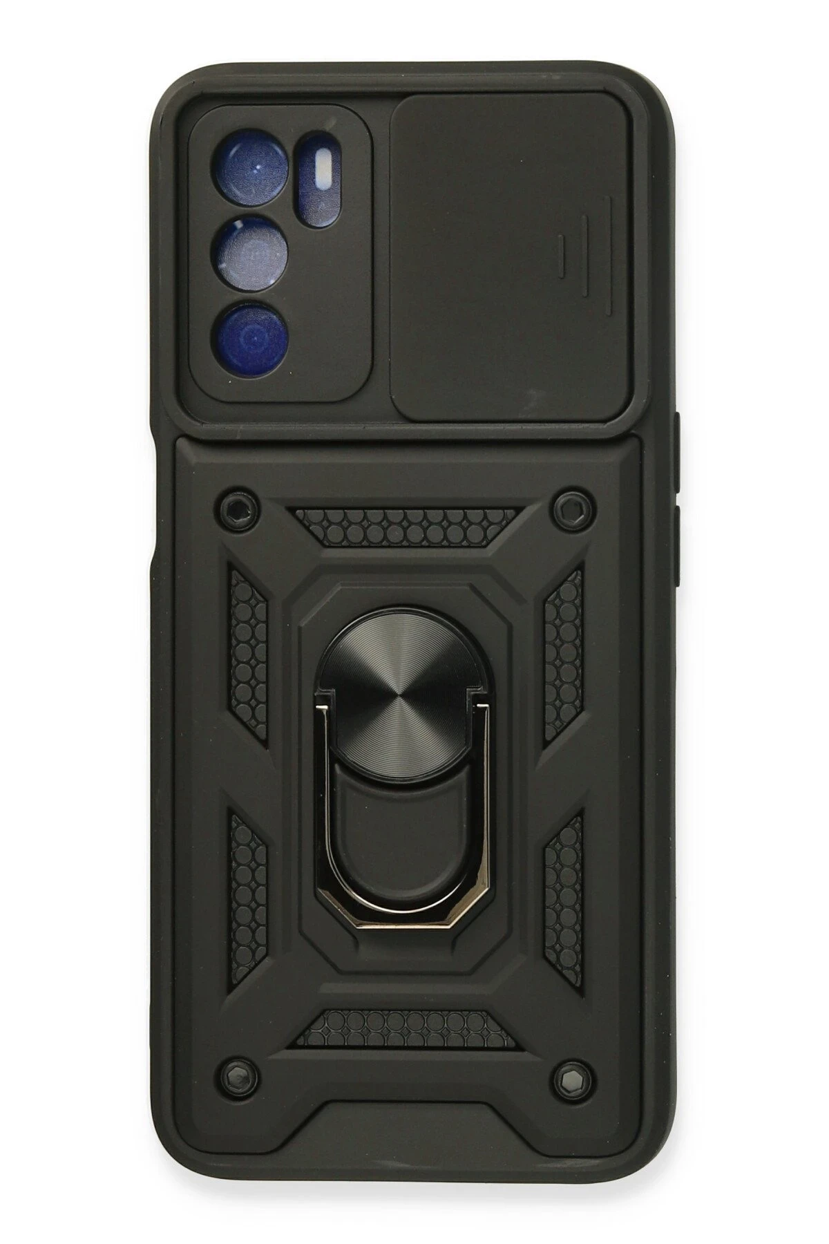 Newface Oppo A16 Kılıf Pars Lens Yüzüklü Silikon - Siyah