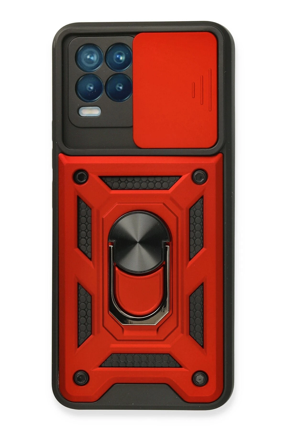 Newface Realme 8 Kılıf Pars Lens Yüzüklü Silikon - Kırmızı