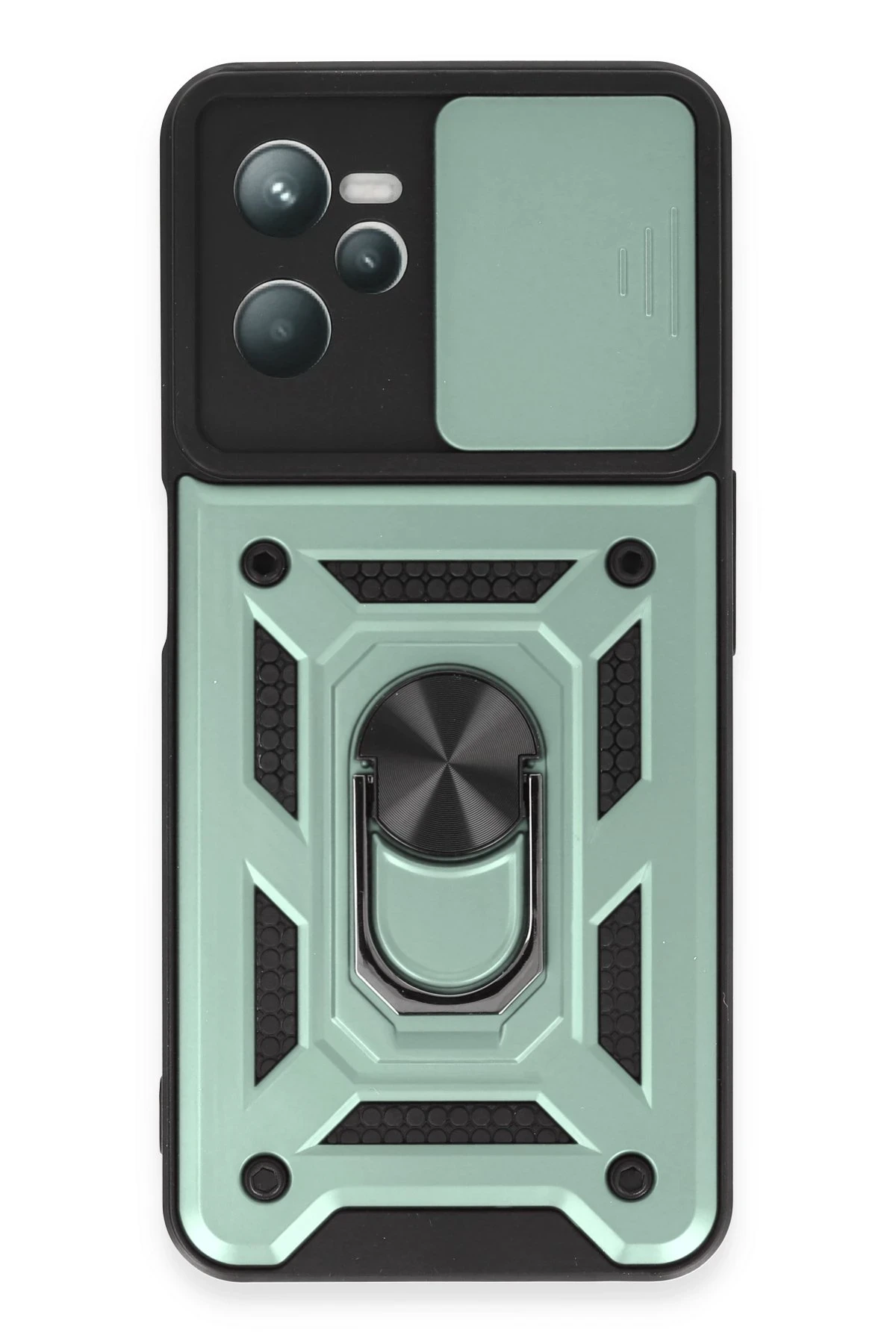 Newface Realme C35 Kılıf Pars Lens Yüzüklü Silikon - Yeşil