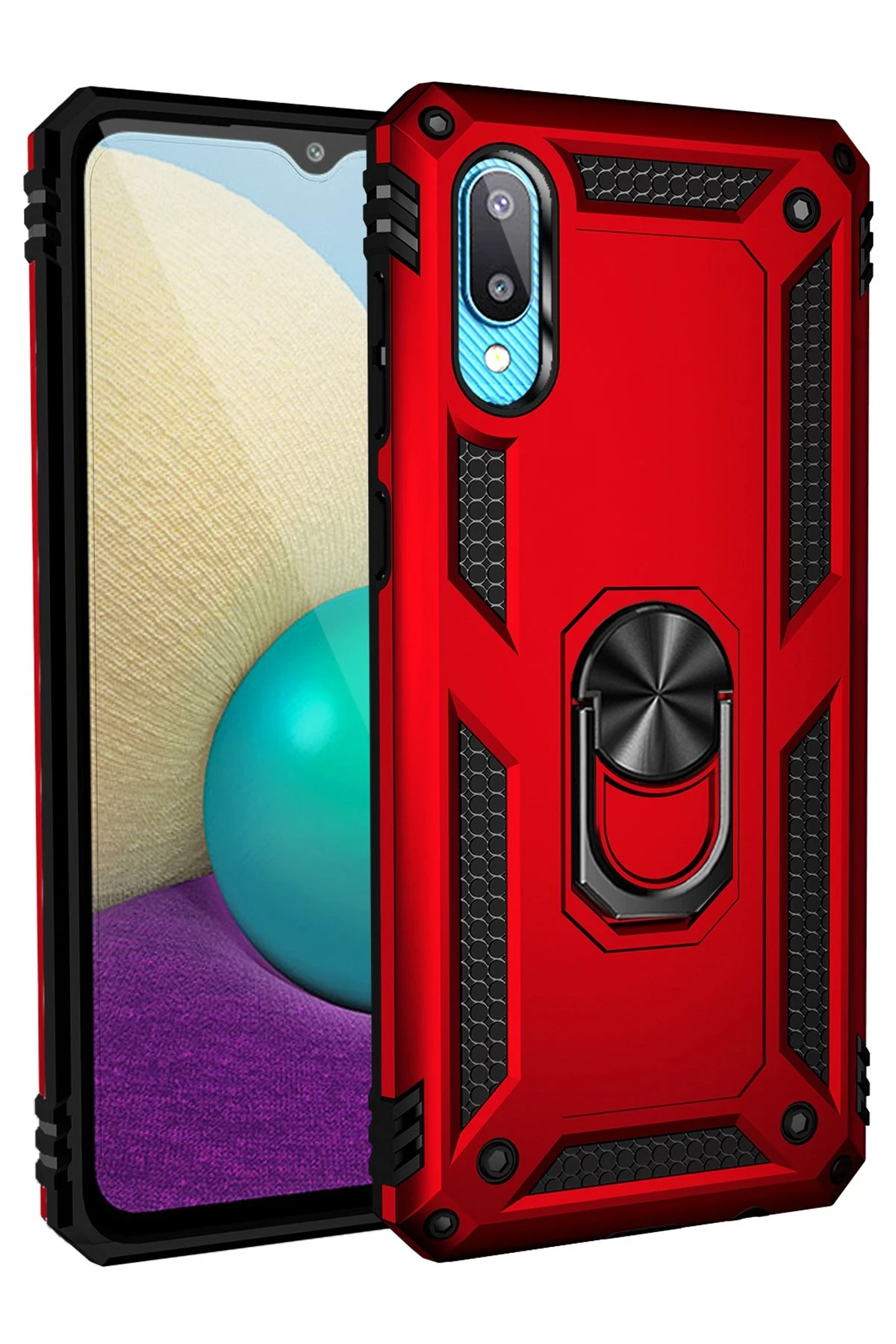Newface Samsung Galaxy A02 Kılıf Sofya Yüzüklü Silikon Kapak - Kırmızı
