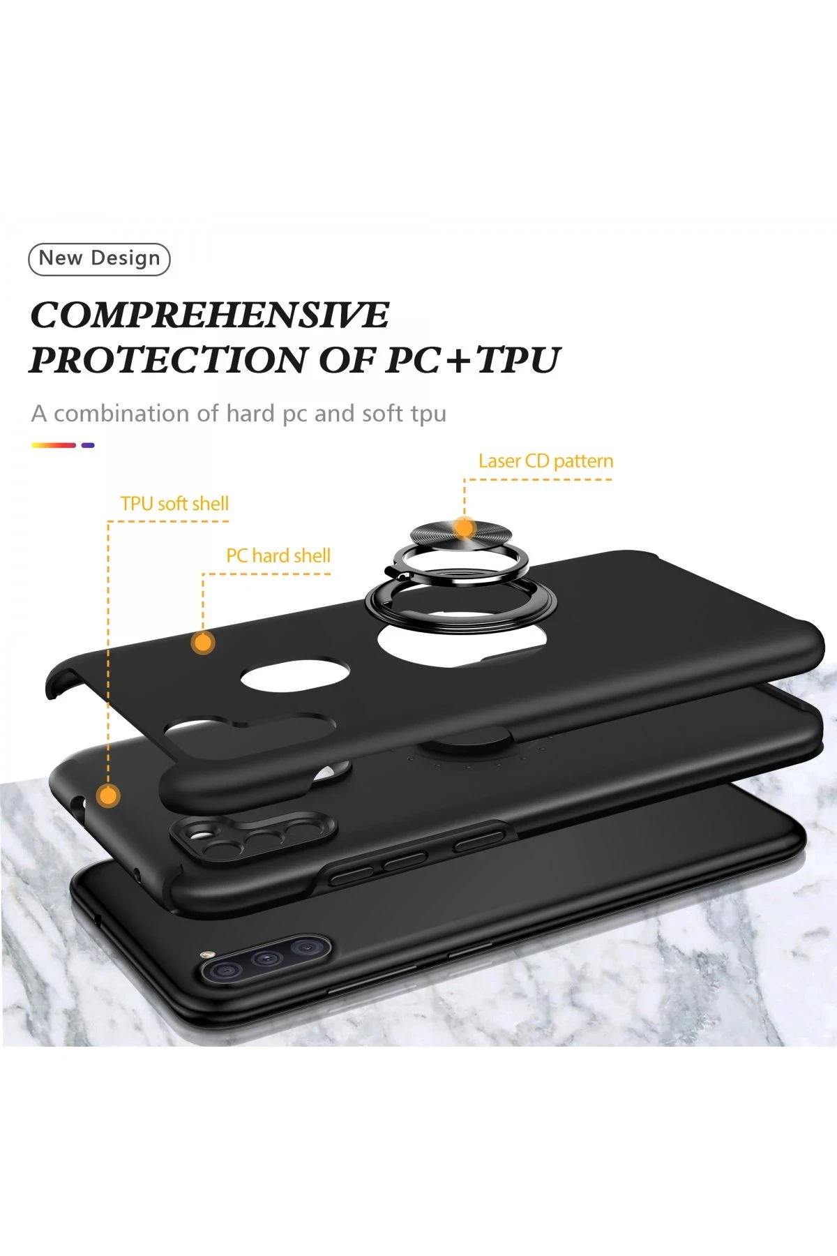 Newface Samsung Galaxy A11 Kılıf Elit Yüzüklü Kapak - Siyah