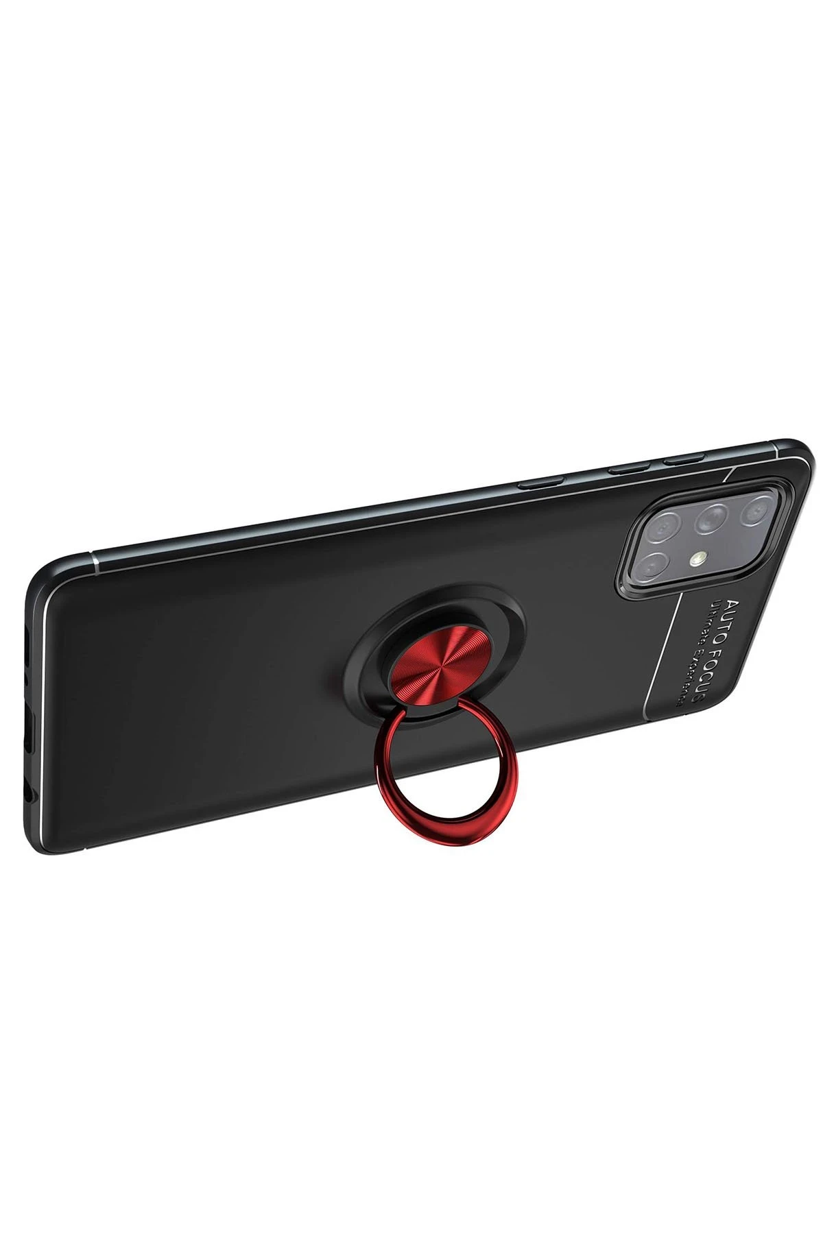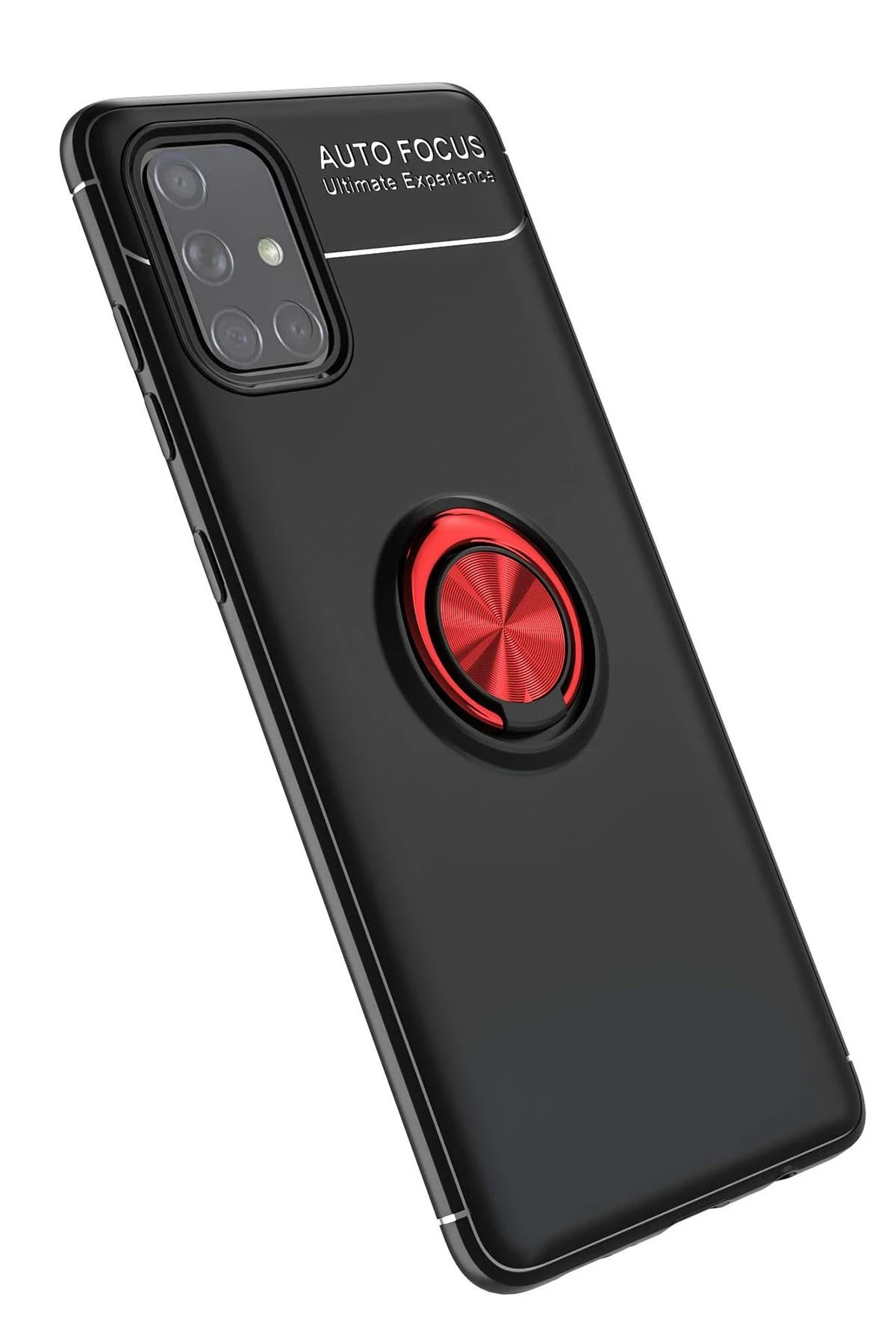 Newface Samsung Galaxy A71 Kılıf Range Yüzüklü Silikon - Siyah-Kırmızı