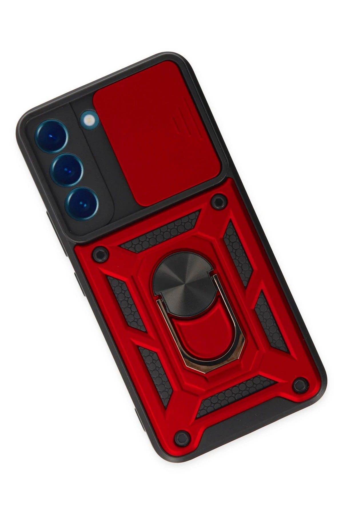 Newface Samsung Galaxy S22 Kılıf Pars Lens Yüzüklü Silikon - Kırmızı