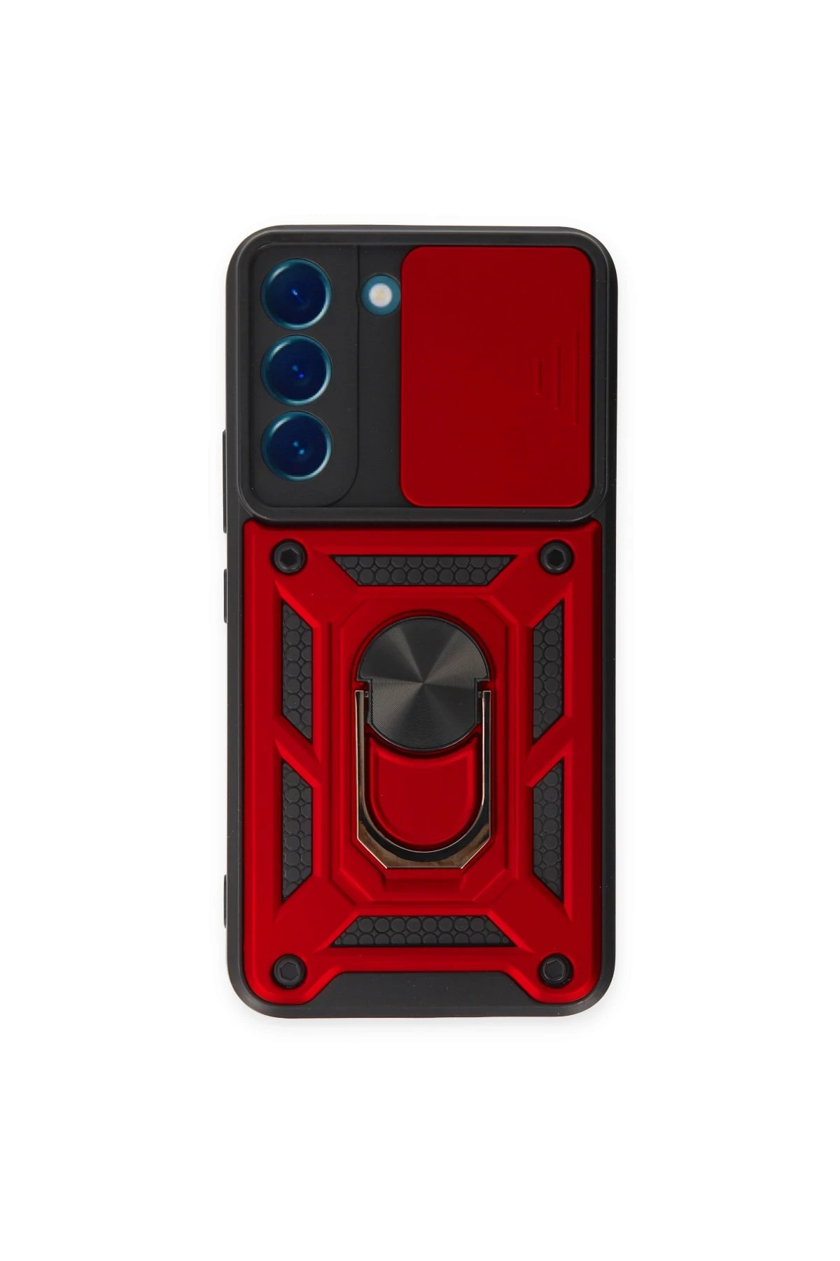 Newface Samsung Galaxy S23 Kılıf Pars Lens Yüzüklü Silikon - Kırmızı