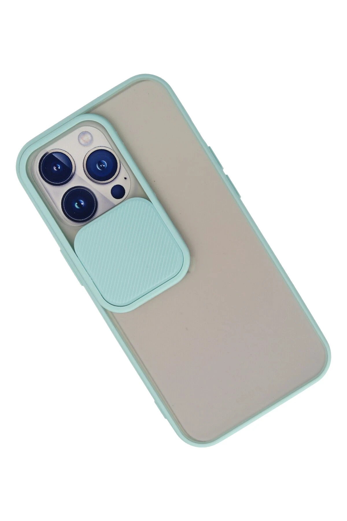 Newface iPhone 13 Pro Kılıf Palm Buzlu Kamera Sürgülü Silikon - Turkuaz