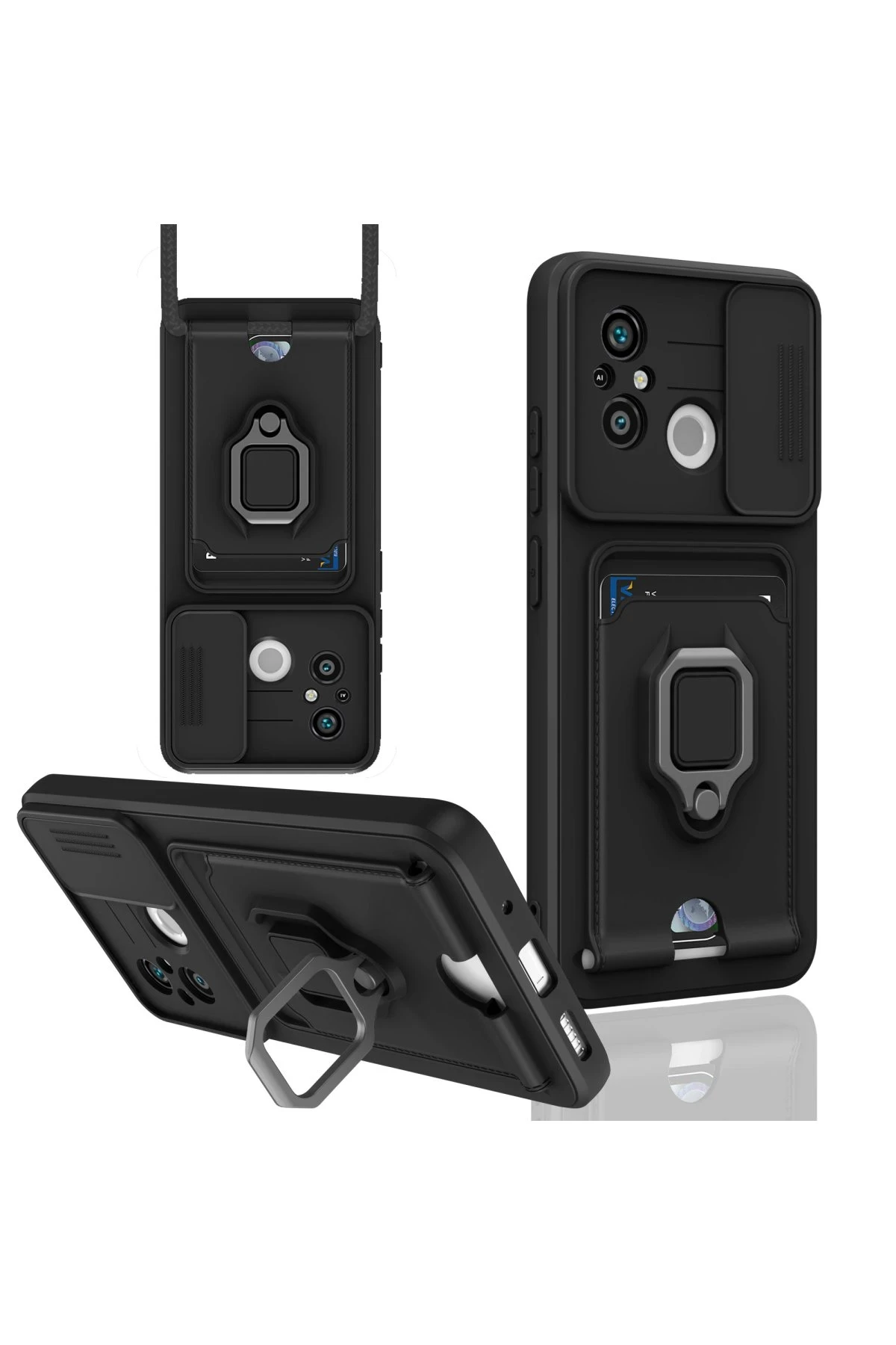 Kart Bölmeli | Kamera Korumalı | Stand Yüzük Destekli | Soft TPU Tasarım