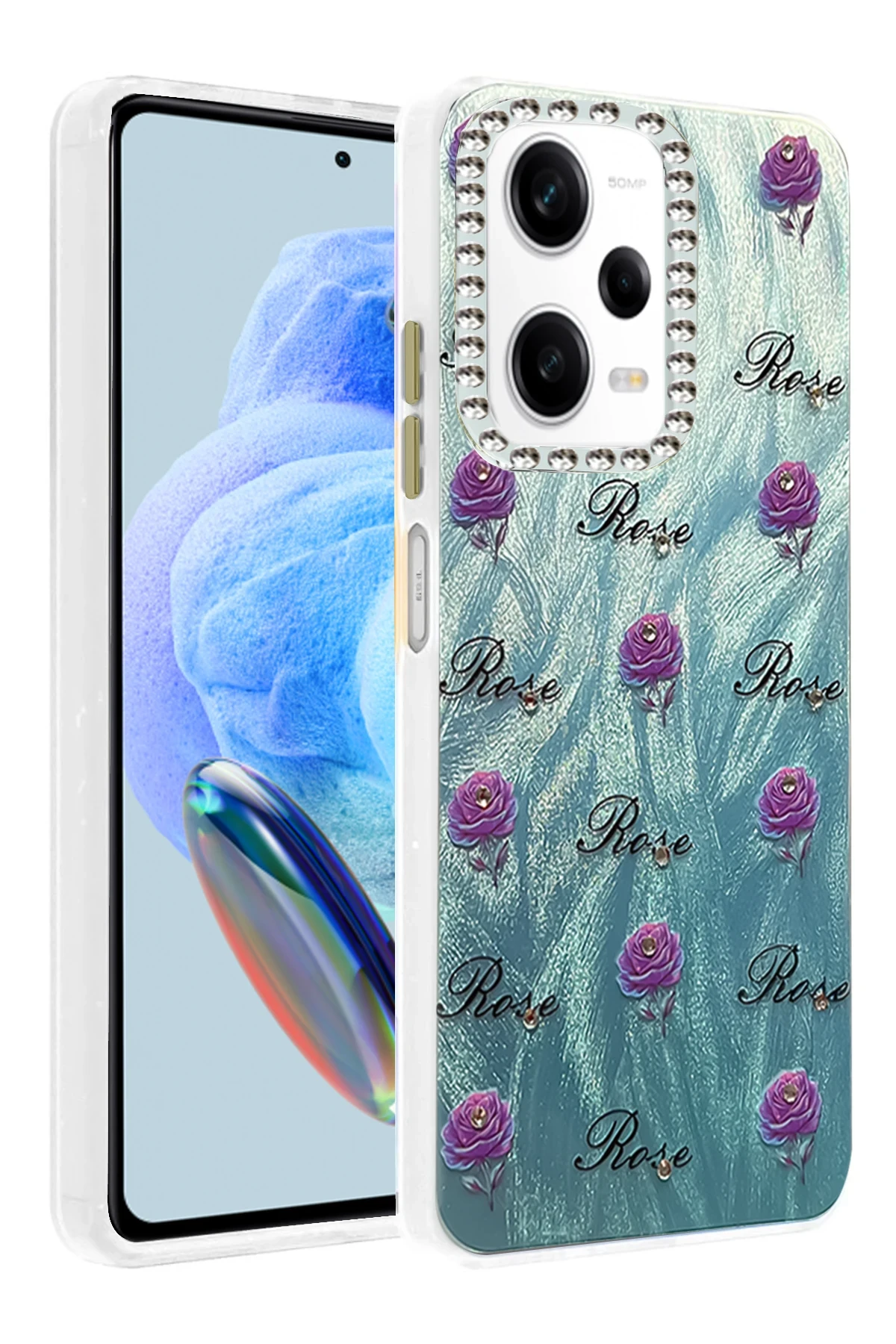 Kamera çevresinde yer alan parlak taş detaylar, hem zarafet hem de fonksiyonellik sunar.