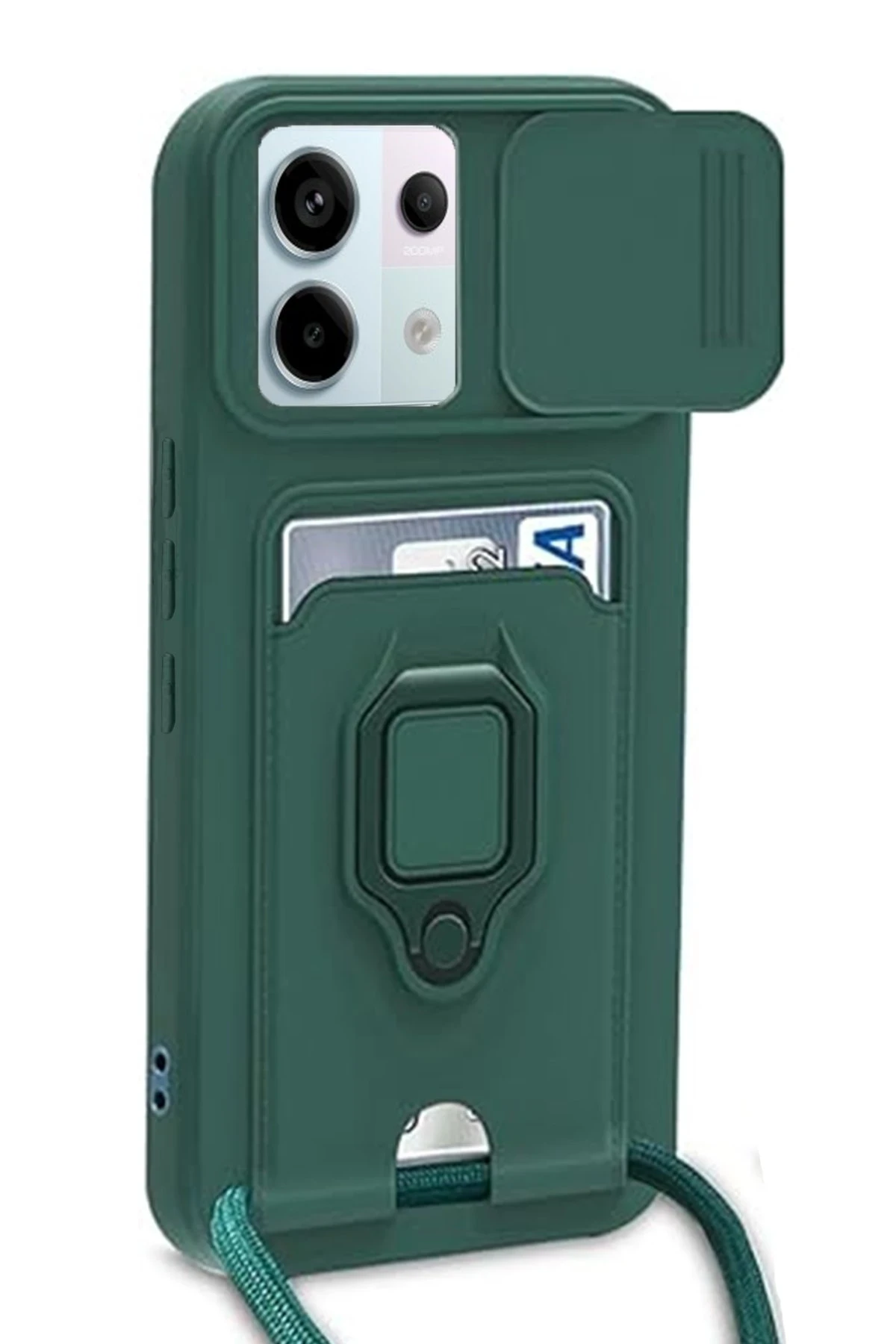 Newface Xiaomi Redmi Note 13 Pro 5G Kılıf Zuma Kartvizitli Yüzüklü Silikon - Yeşil