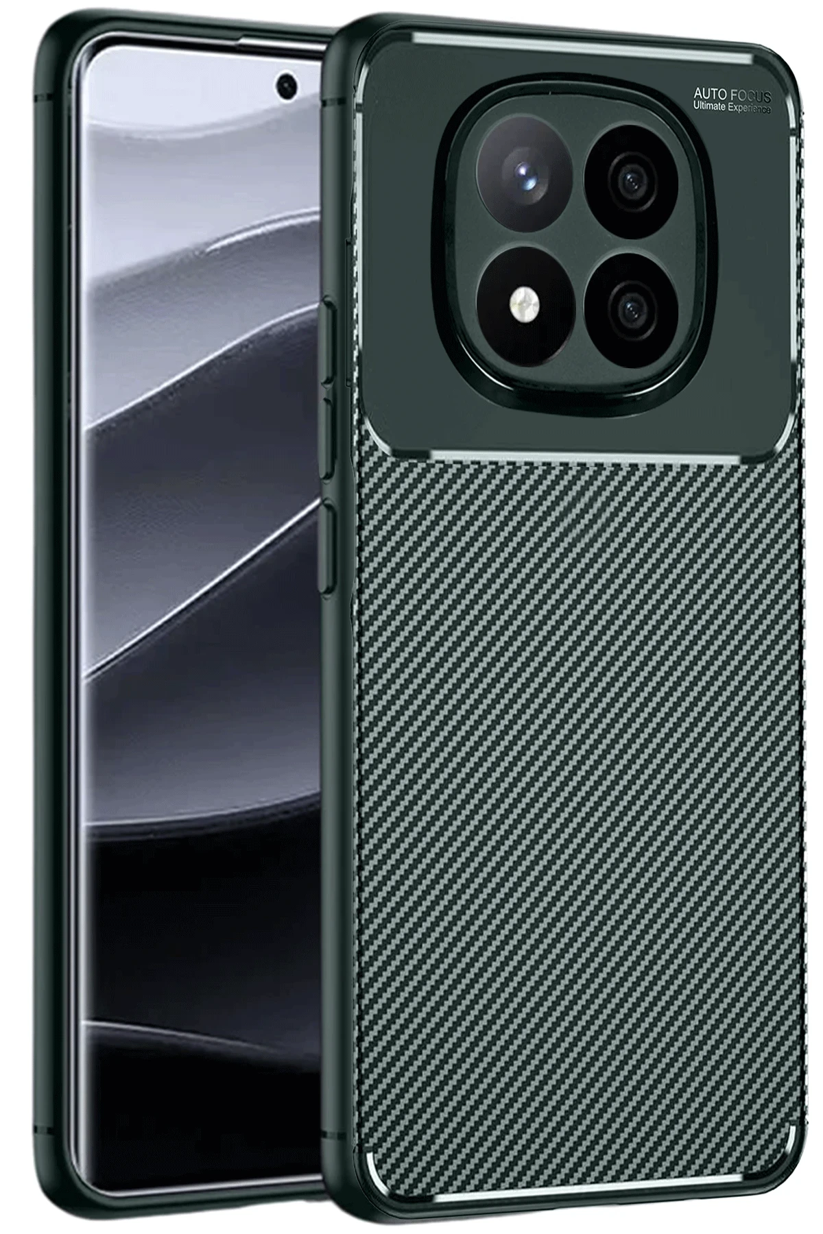 Newface Xiaomi Redmi Note 14 Pro 5G Kılıf Auto Focus Karbon Kapak - Koyu Yeşil