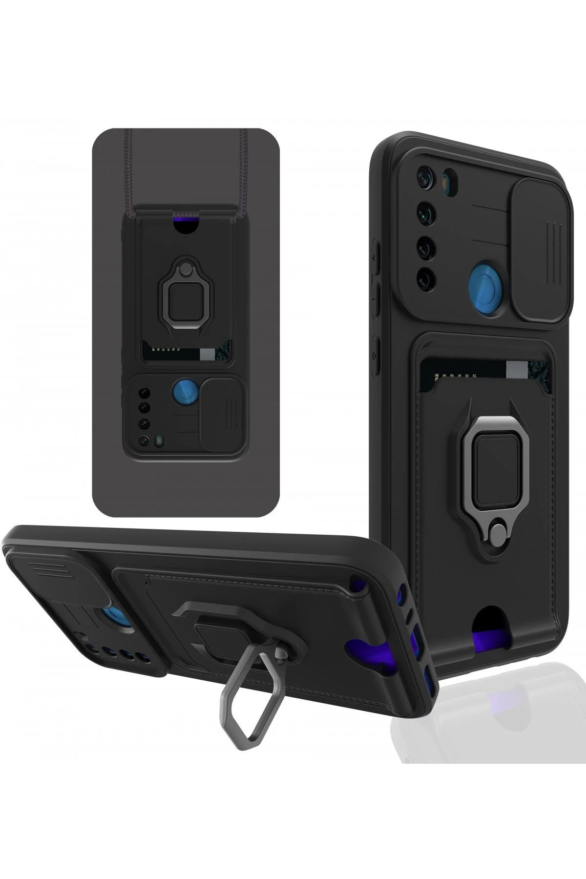 Newface Xiaomi Redmi Note 8 Kılıf Zuma Kartvizitli Yüzüklü Silikon - Siyah