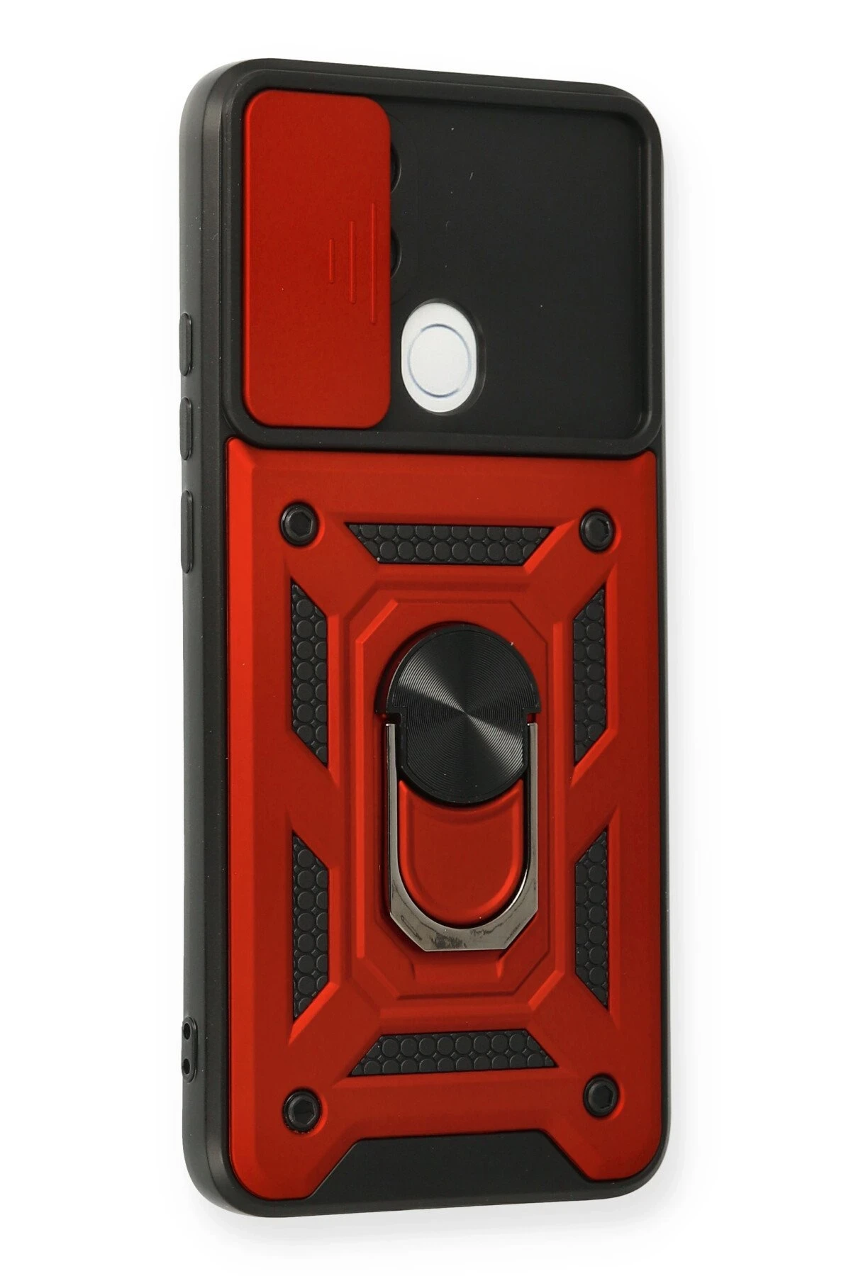 Newface Oppo A15 Kılıf Pars Lens Yüzüklü Silikon - Kırmızı