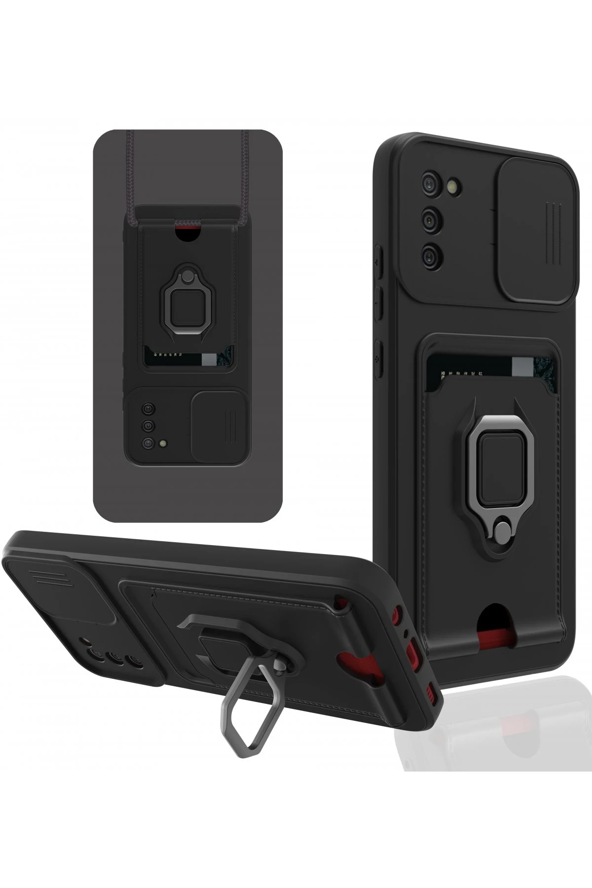 Kart Bölmeli | Kamera Korumalı | Stand Yüzük Destekli | Soft TPU Tasarım