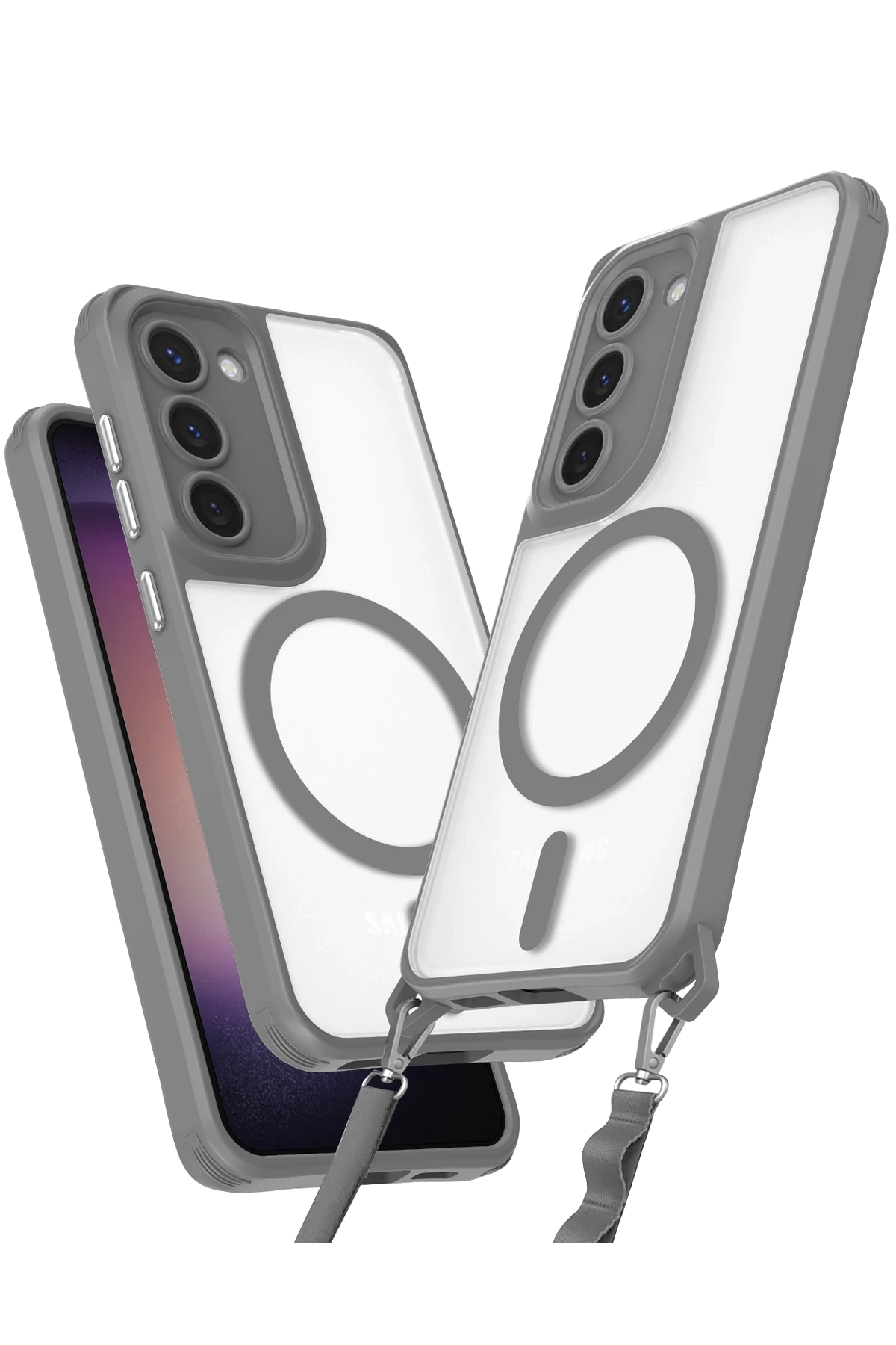 Köşelerdeki özel halkalar sayesinde çıkarılabilir askı aparatı takılabilir. Böylece telefonunuzu boynunuza, omzunuza veya bileğinize takarak hem özgürlük hem de kolay erişim sağlarsınız. Yürüyüşlerde, kalabalık ortamlarda ya da seyahatlerde vazgeçilmez bir konfor sunar.