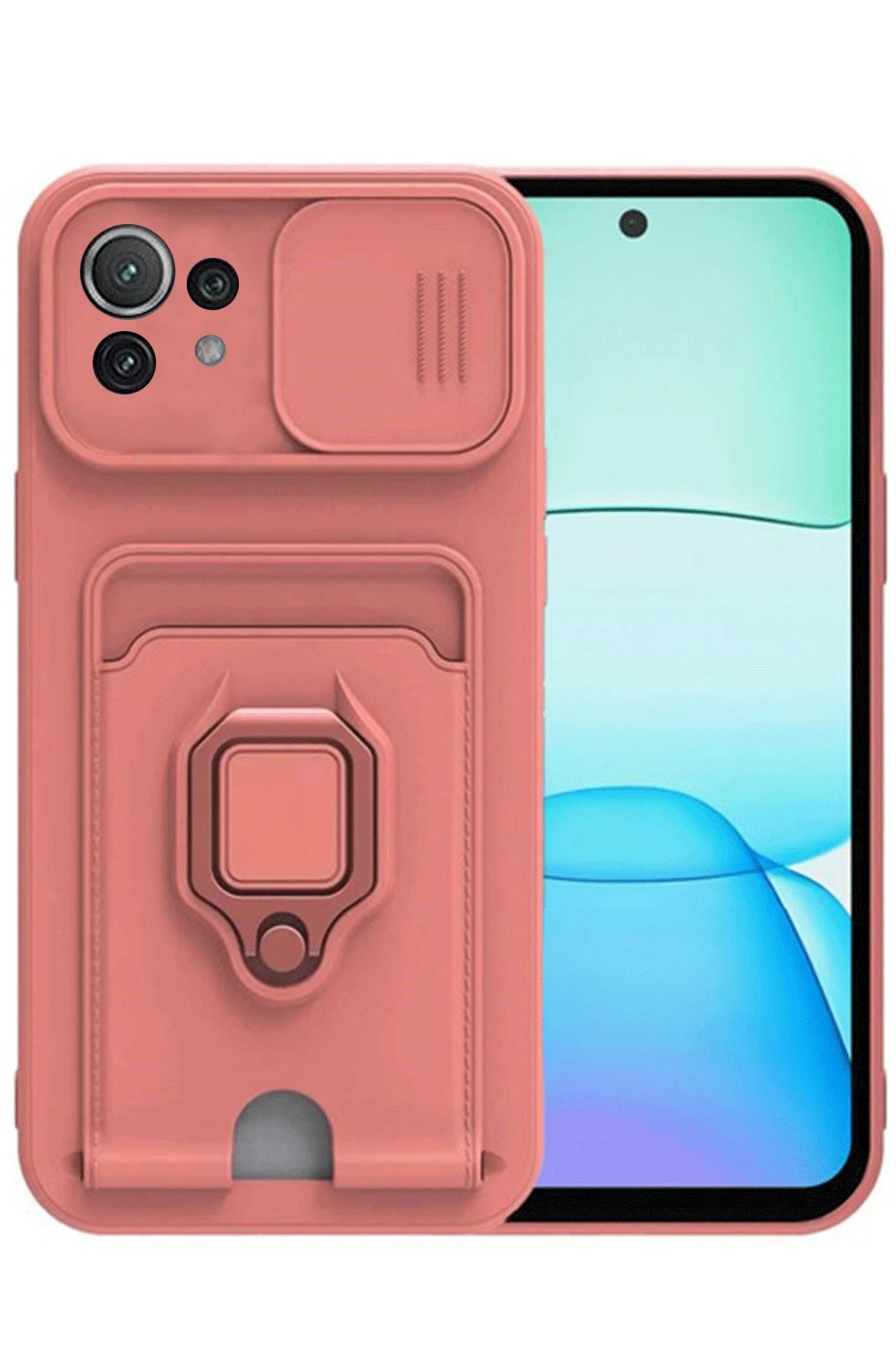 Newface Xiaomi Mİ 11 Lite Kılıf Zuma Kartvizitli Yüzüklü Silikon - Pembe