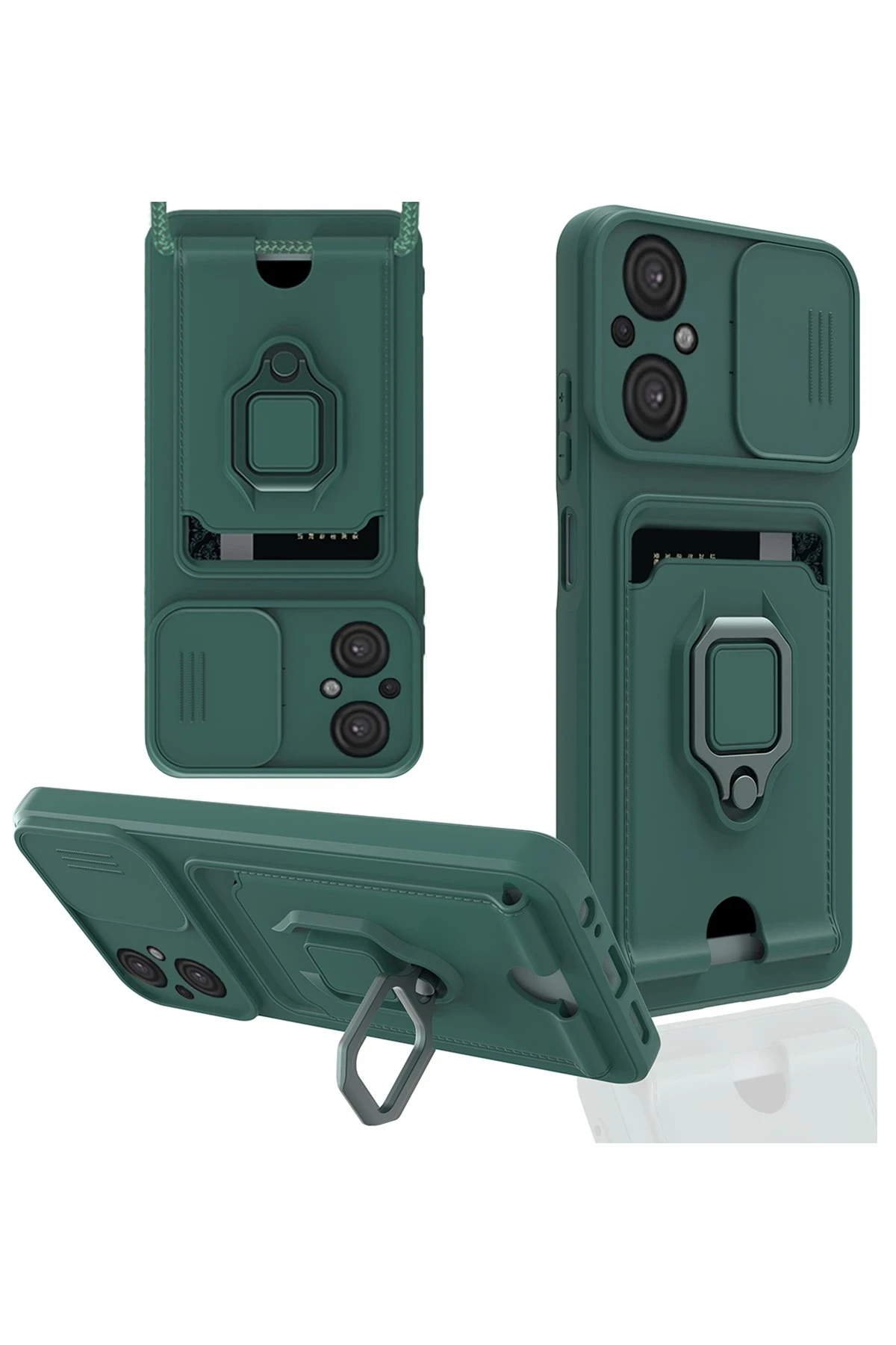 Newface Xiaomi Poco M5 Kılıf Zuma Kartvizitli Yüzüklü Silikon - Yeşil