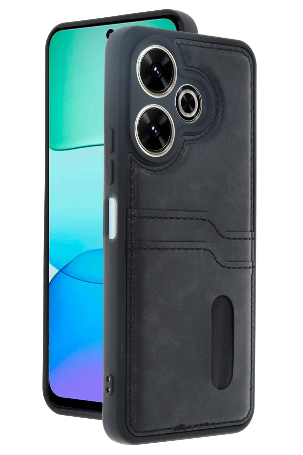 Newface Xiaomi Redmi 13 4G Kılıf Sara Kartvizitli Deri Kılıf - Siyah