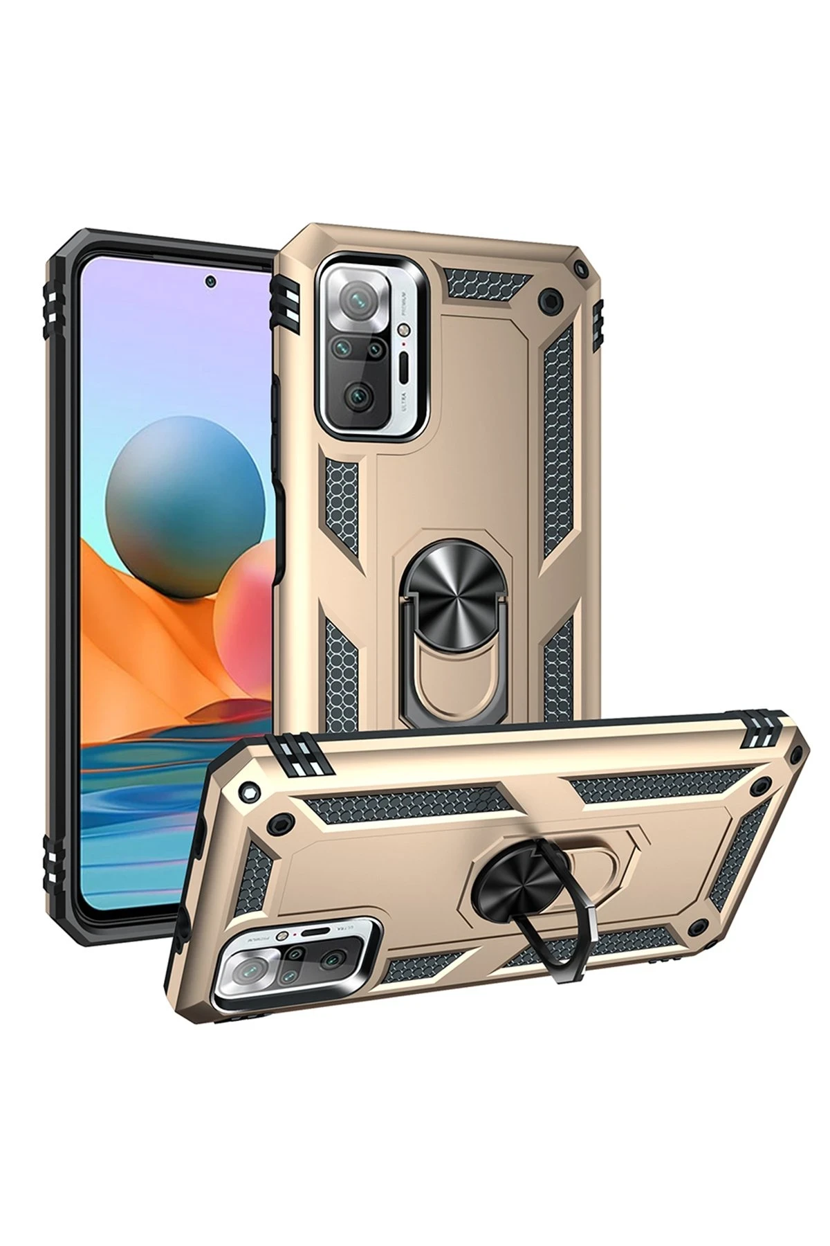 Newface Xiaomi Redmi Note 10 Pro Kılıf Sofya Yüzüklü Silikon Kapak - Gold