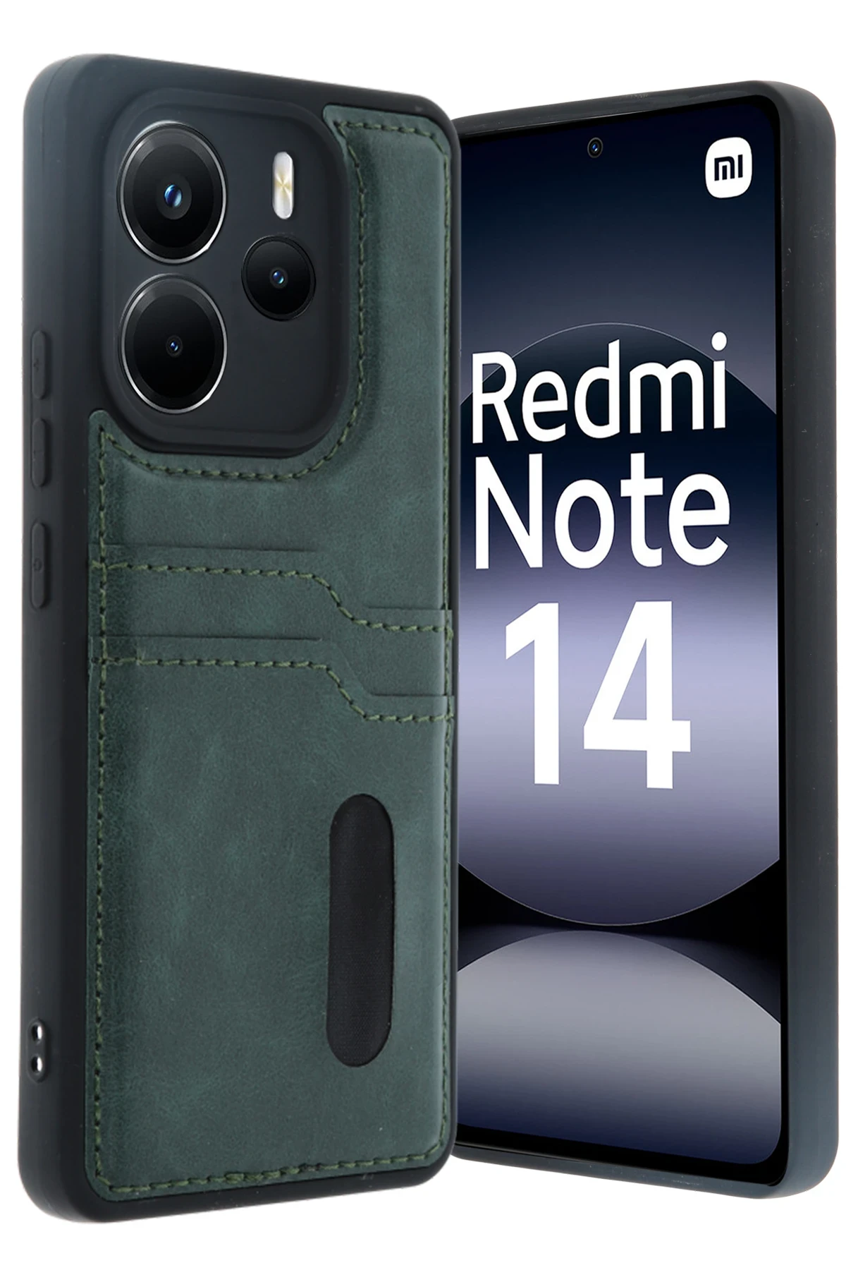 Newface Xiaomi Redmi Note 14 4G Kılıf Sara Kartvizitli Deri Kılıf - Koyu Yeşil